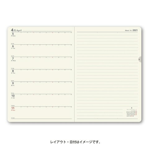 ・【週間ページ】見開き1週間で左ページに予定、右ページはメモスペースとして使えるレフトタイプ(月曜始まり)。
