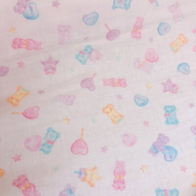 ダブルガーゼ 生地 キャンディーポップ うさぎ ハート Wガーゼ 綿100% 布 手芸 生地 動物柄 赤ちゃん スタイ マスク 夢かわいい グミ くま 飴 GUMMY